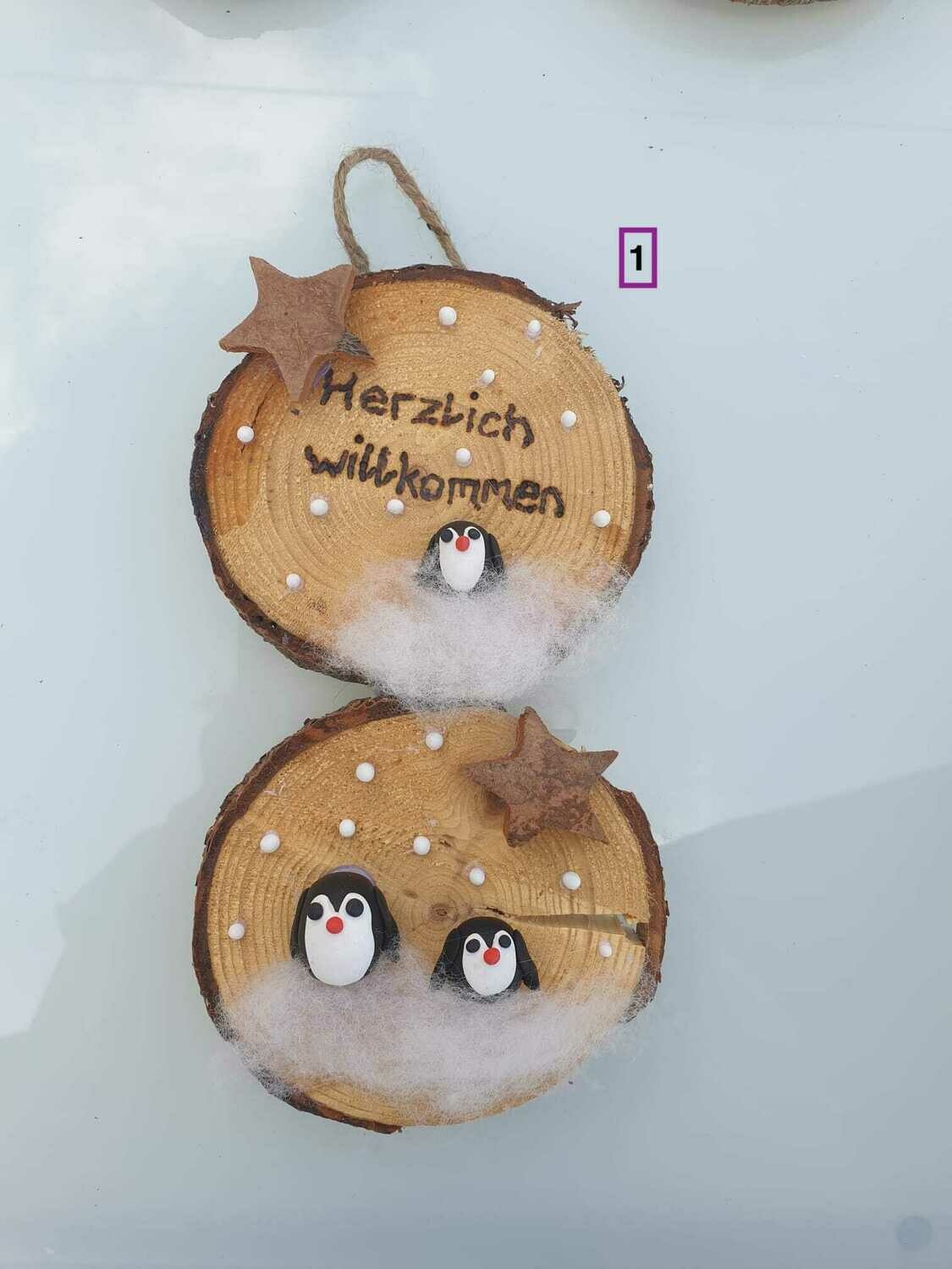 Ds Türschiudli besteit us zwöi Houzteili wo mitenang verbunde si. D Dekoration druffe besteit je nach Usfüehrig us Sache woni säuber ir Natur bi ga sammle. D Tierli oder Verzierige bestöh us Fimo und si aglimmet.
